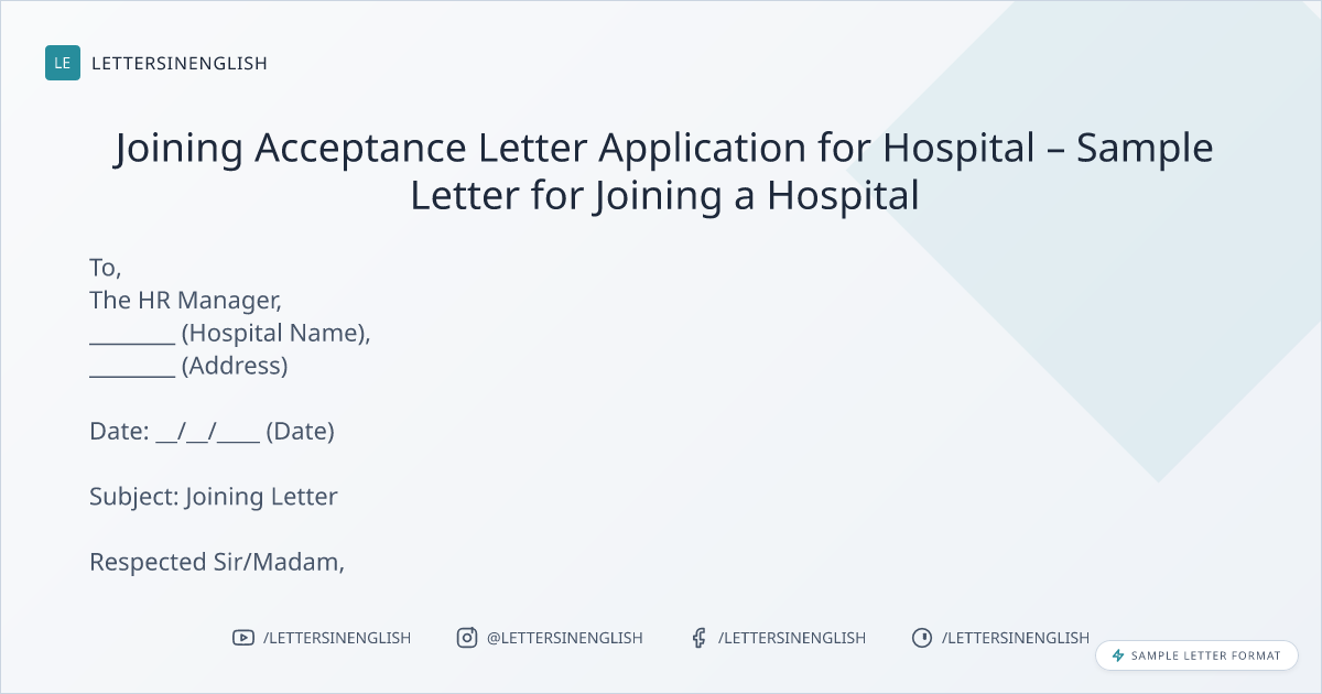 Joining Acceptance Letter Application for Hospital – Sample Letter for Joining a Hospital