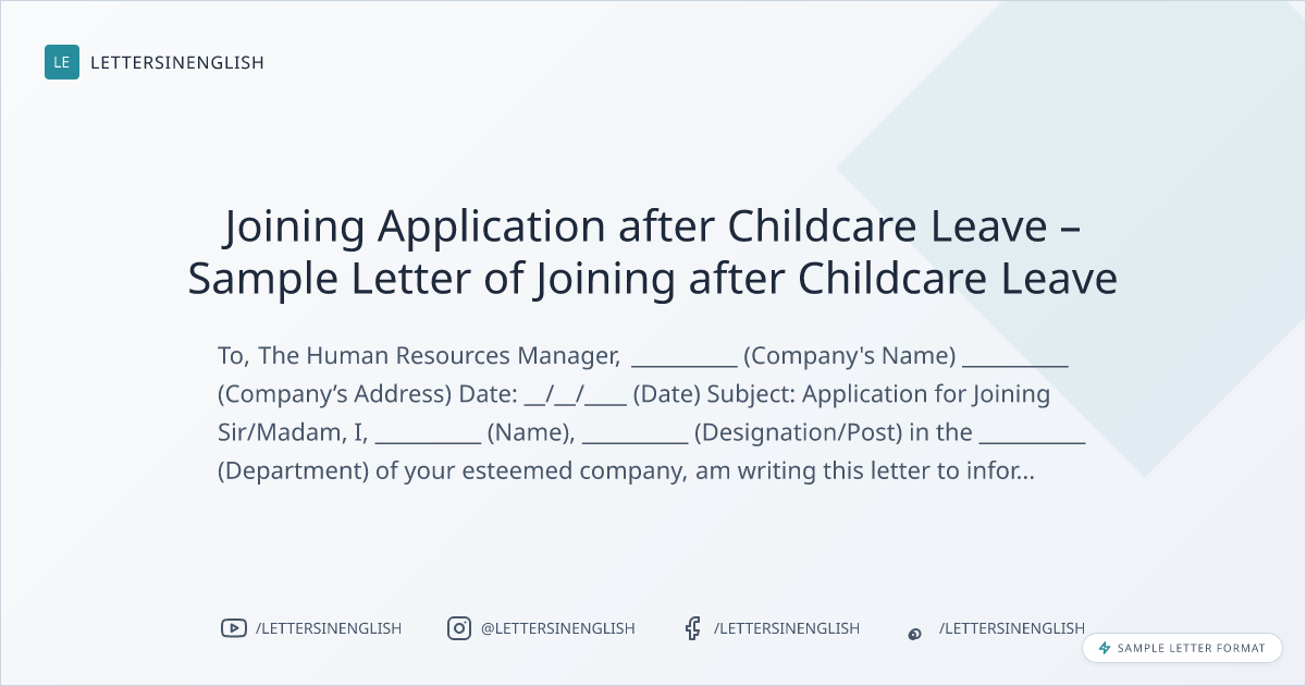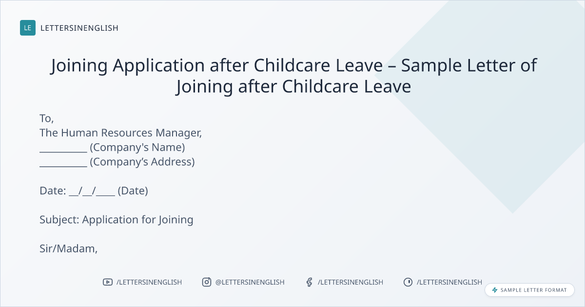 Joining Application after Childcare Leave – Sample Letter of Joining after Childcare Leave