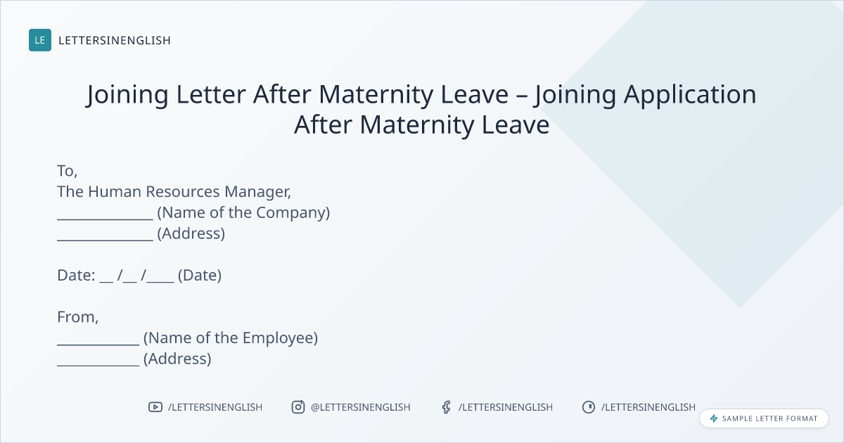 Joining Letter After Maternity Leave – Joining Application After Maternity Leave