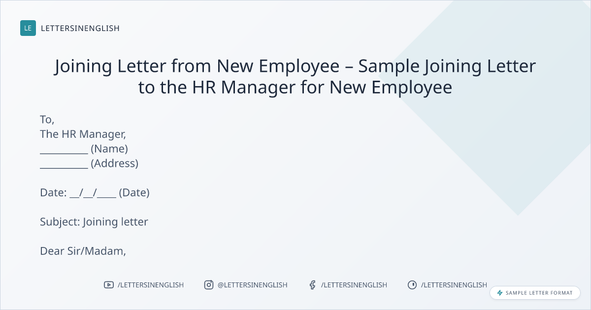 Joining Letter from New Employee – Sample Joining Letter to the HR Manager for New Employee