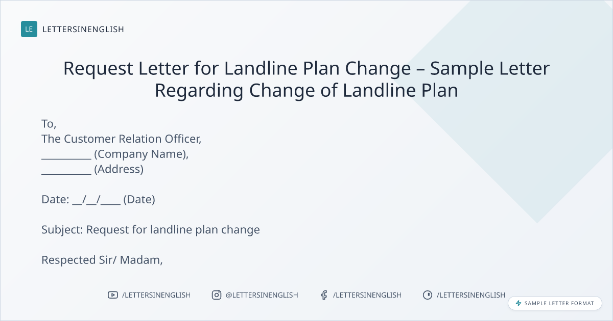 Request Letter for Landline Plan Change – Sample Letter Regarding Change of Landline Plan