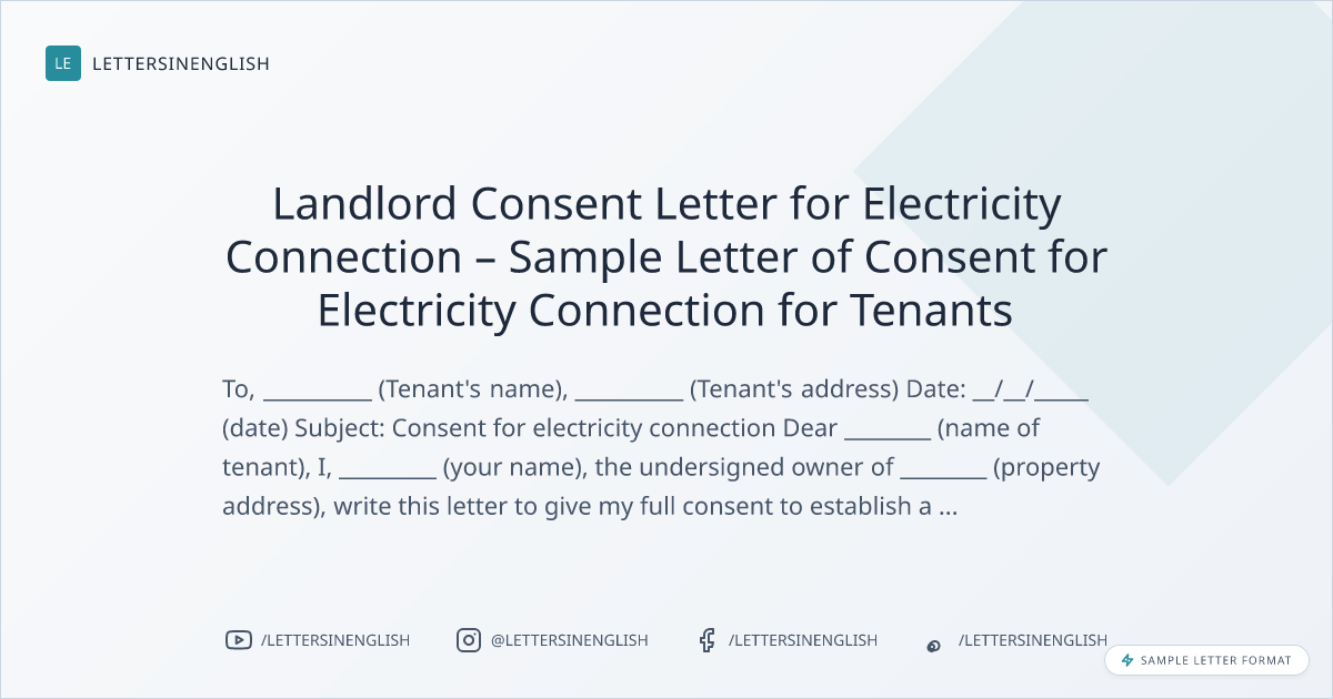 Landlord Consent Letter for Electricity Connection – Sample Letter of Consent for Electricity Connection for Tenants