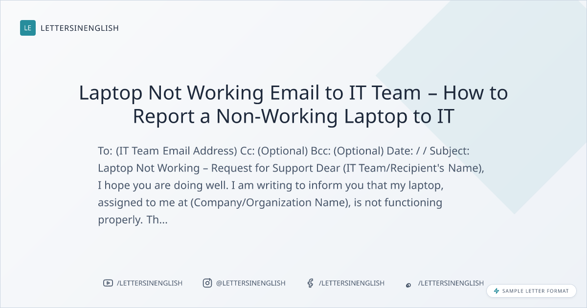 Laptop Not Working Email – Sample Email to IT Team Reporting Laptop Issue