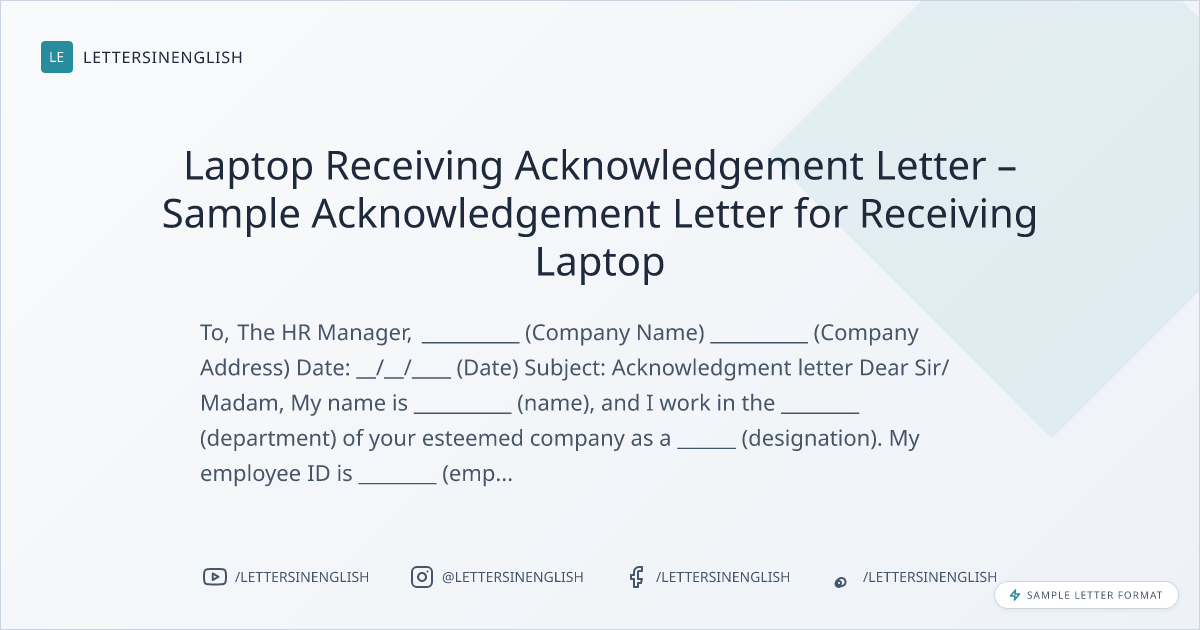 Laptop Receiving Acknowledgement Letter – Sample Acknowledgement Letter for Receiving Laptop