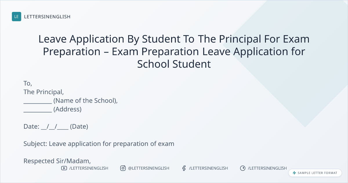 Leave Application By Student To The Principal For Exam Preparation – Exam Preparation Leave Application for School Student