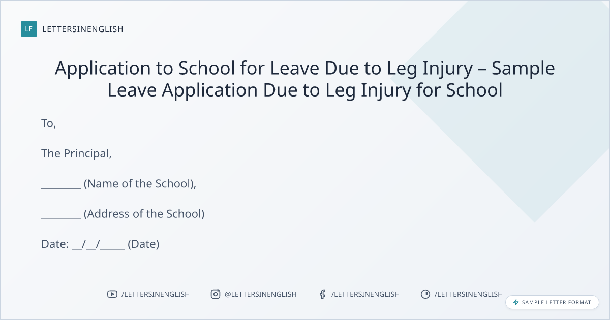 Application to School for Leave Due to Leg Injury – Sample Leave Application Due to Leg Injury for School