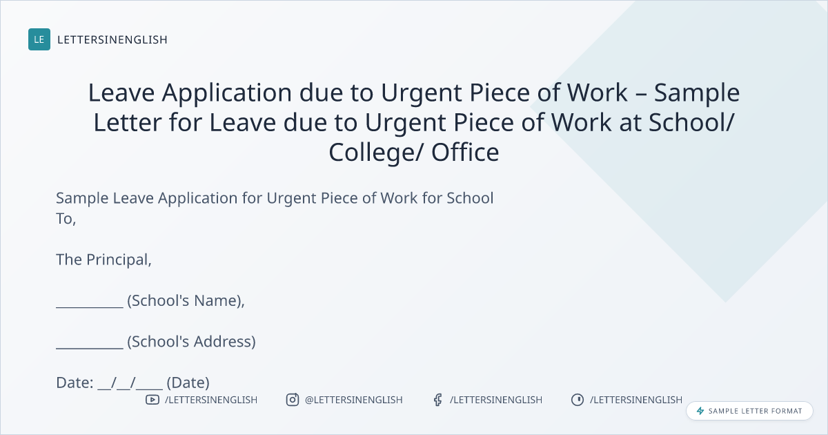 Leave Application due to Urgent Piece of Work – Sample Letter for Leave due to Urgent Piece of Work at School/ College/ Office