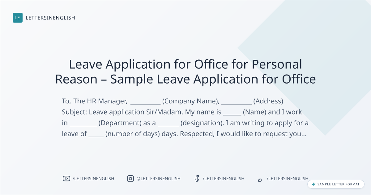 Leave Application for Office for Personal Reason – Sample Leave Application for Office