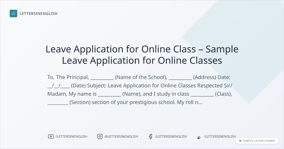 Leave Application for Online Class – Sample Leave Application for Online Classes