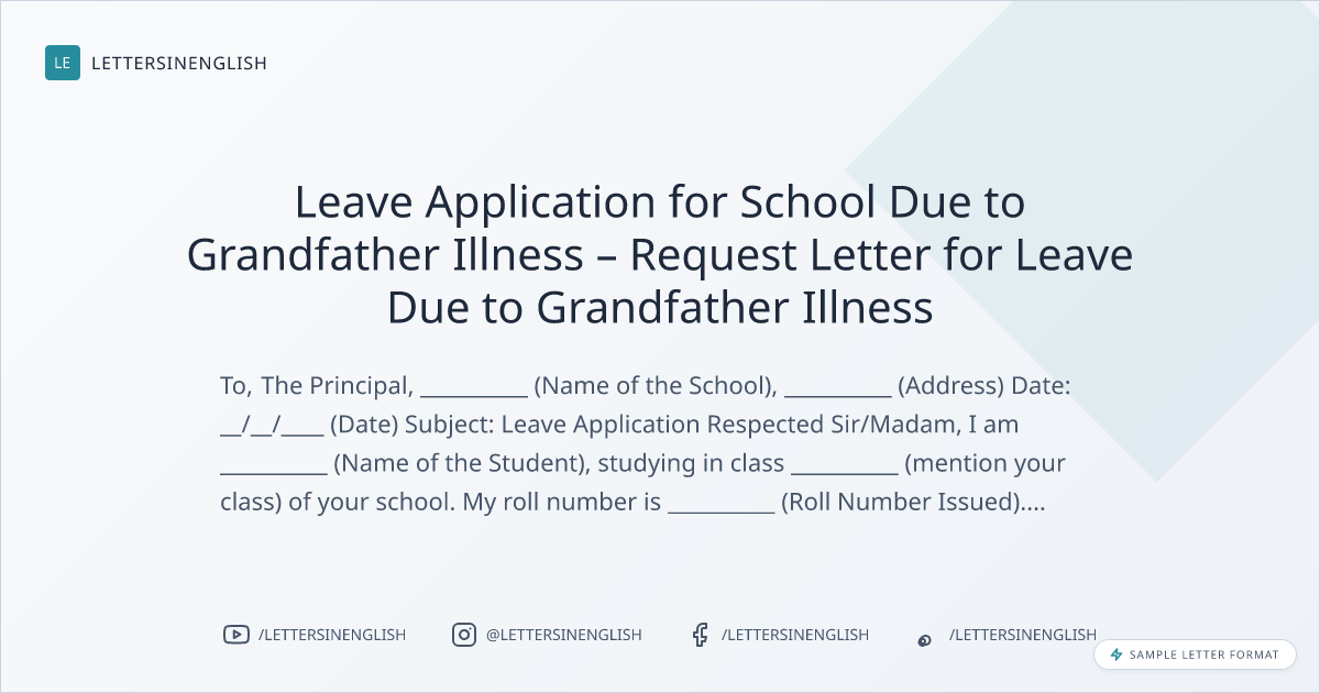 Leave Application for School Due to Grandfather Illness – Request Letter for Leave Due to Grandfather Illness