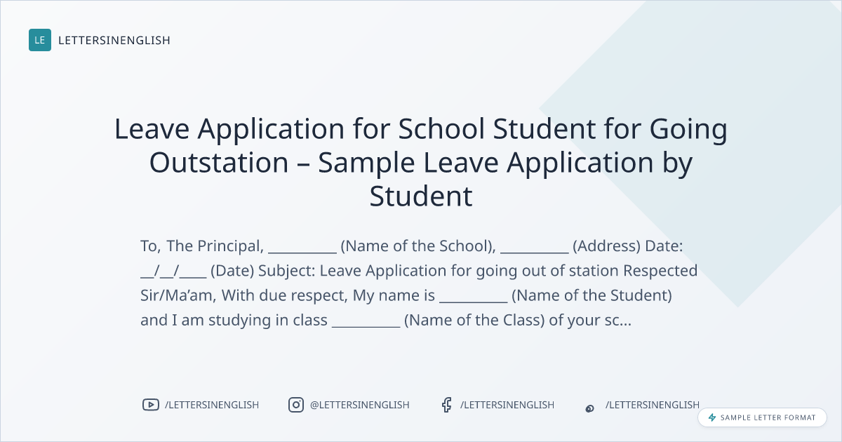 Leave Application for School Student for Going Outstation – Sample Leave Application by Student