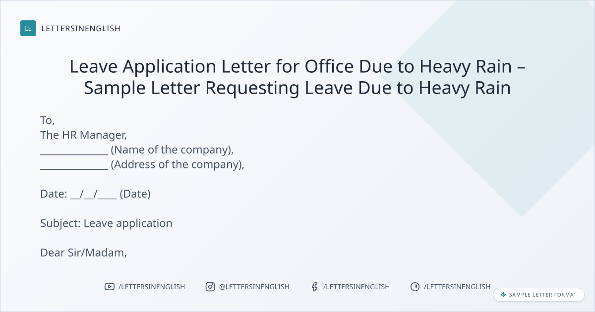 Leave Application Letter for Office Due to Heavy Rain – Sample Letter Requesting Leave Due to Heavy Rain