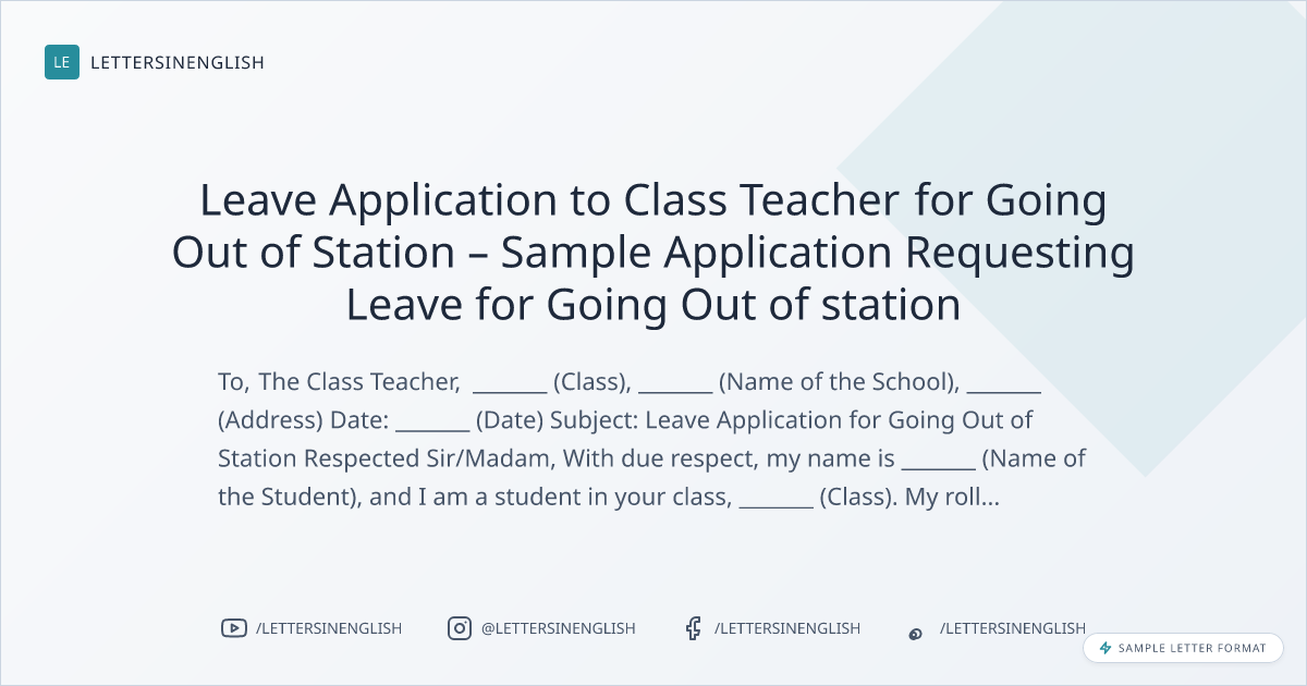 Leave Application to Class Teacher for Going Out of Station – Sample Application Requesting Leave for Going Out of station
