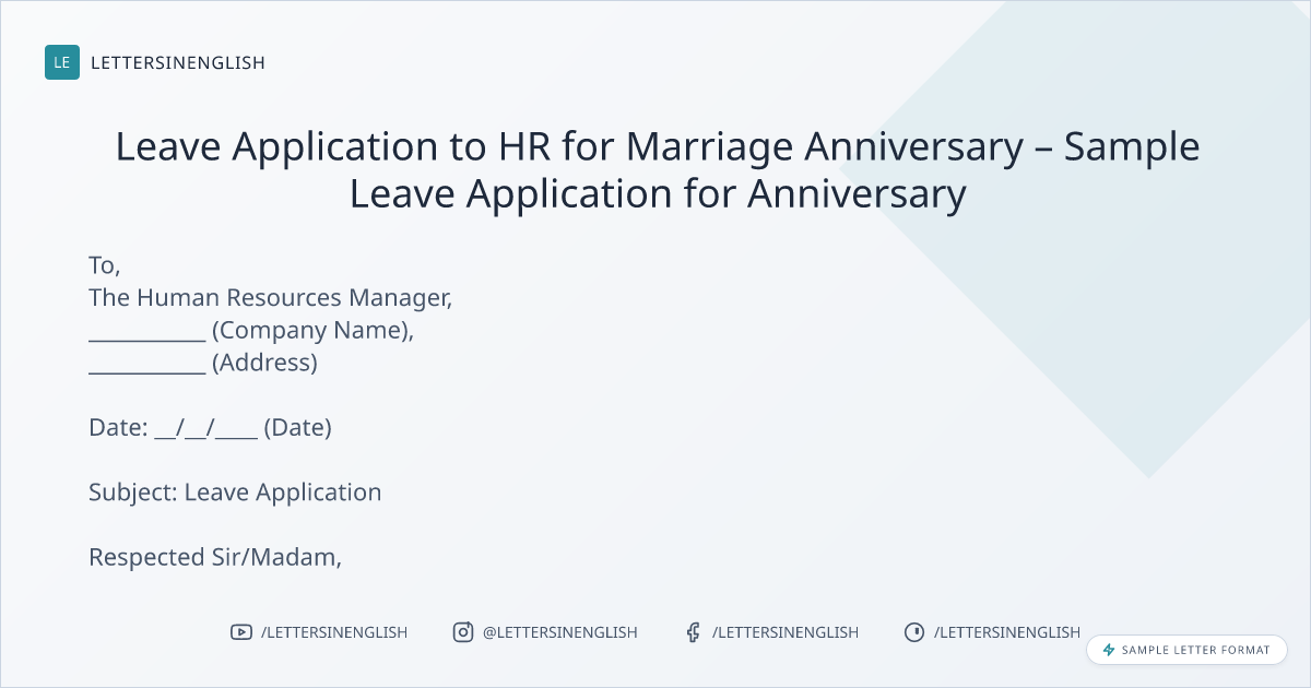 Leave Application to HR for Marriage Anniversary – Sample Leave Application for Anniversary