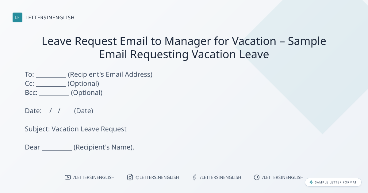 Leave Request Email to Manager for Vacation – Sample Email Requesting Vacation Leave