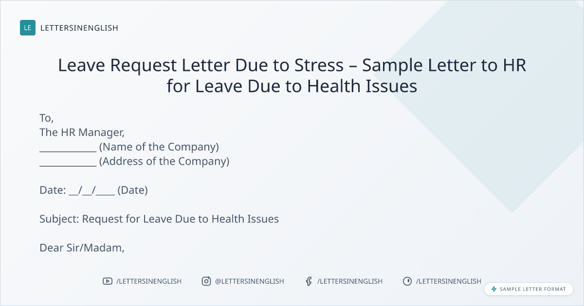 Leave Request Letter Due to Stress – Sample Letter to HR for Leave Due to Health Issues