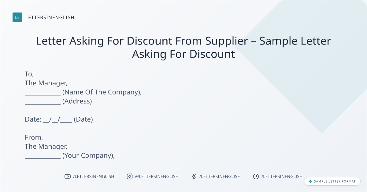 Letter Asking For Discount From Supplier – Sample Letter Asking For Discount