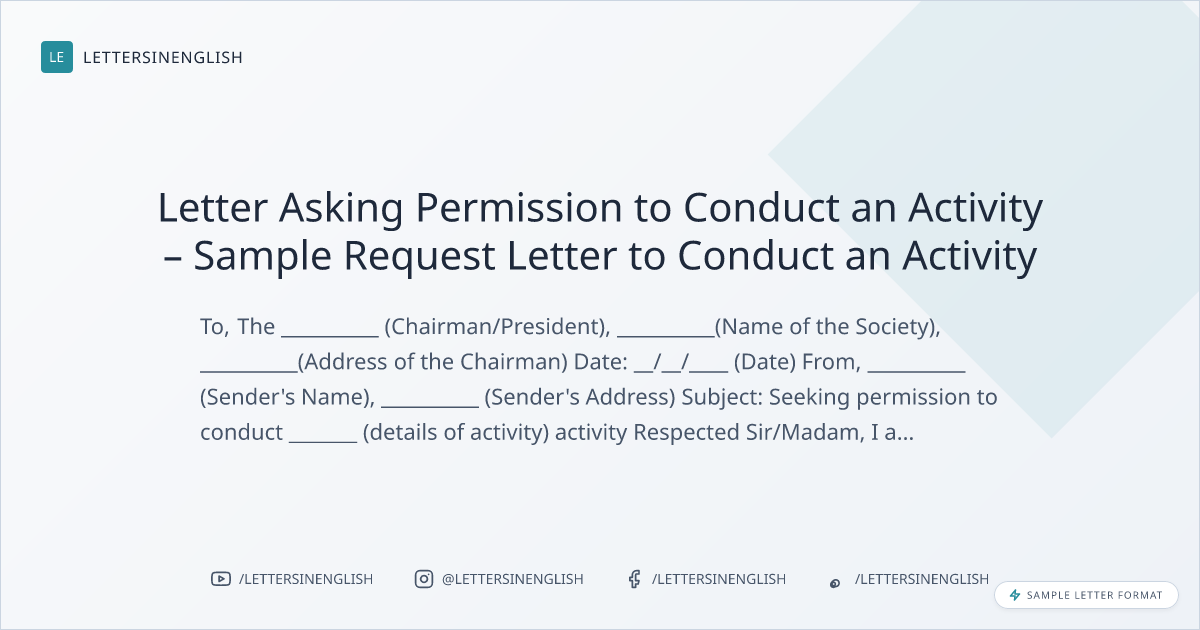 Letter Asking Permission to Conduct an Activity – Sample Request Letter to Conduct an Activity