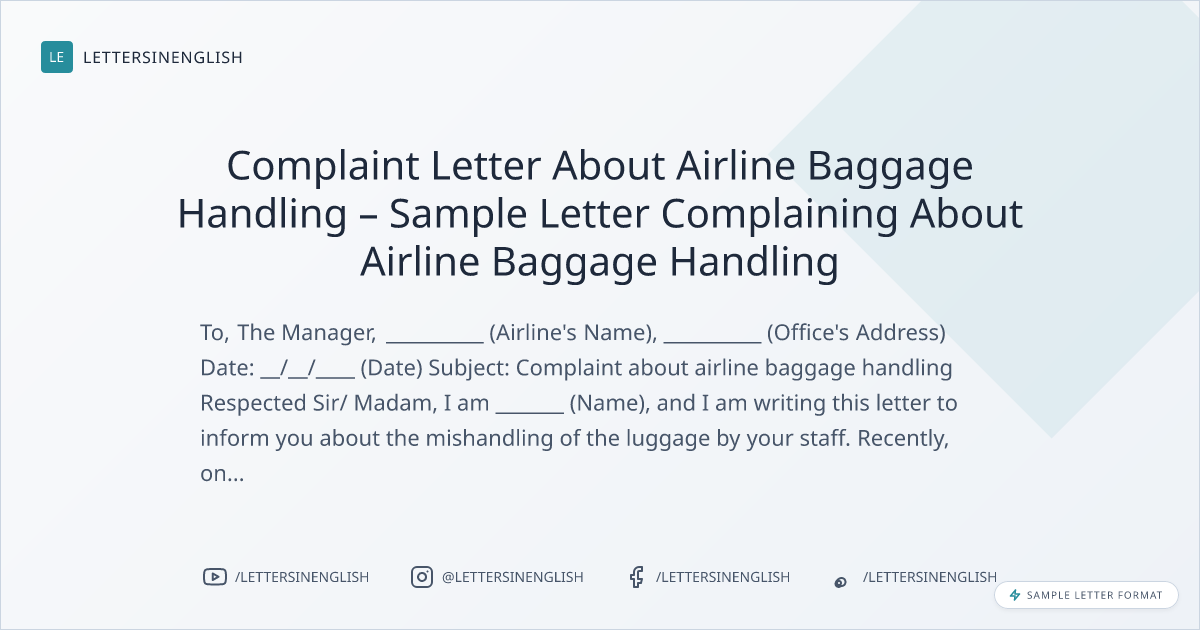 Complaint Letter About Airline Baggage Handling – Sample Letter Complaining About Airline Baggage Handling
