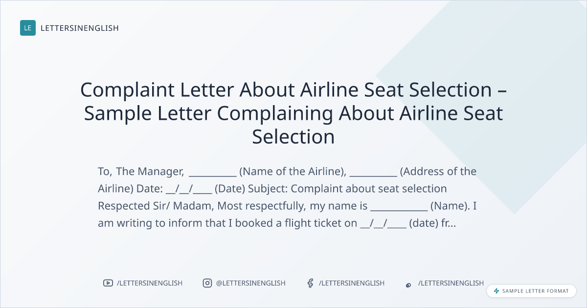 - Letter Template: Seat Selection Issue Complaint - Sample Letter