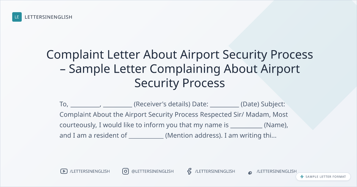 Complaint Letter About Airport Security Process – Sample Letter Complaining About Airport Security Process