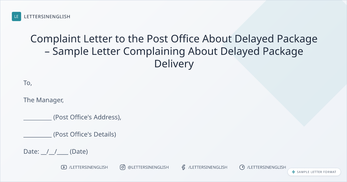 Complaint Letter to the Post Office About Delayed Package – Sample Letter Complaining About Delayed Package Delivery