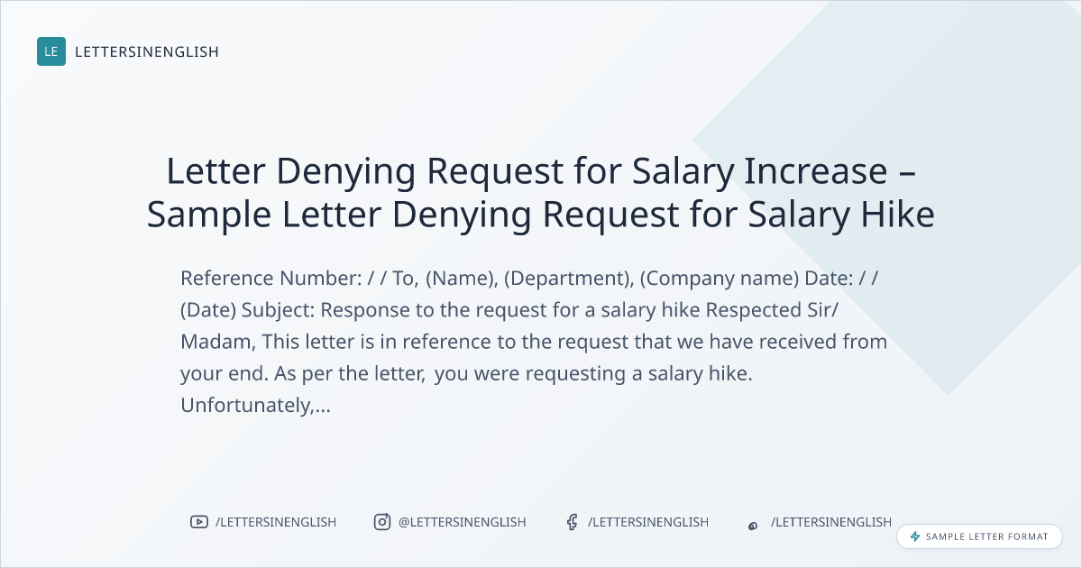 Letter Denying Request for Salary Increase – Sample Letter Denying Request for Salary Hike