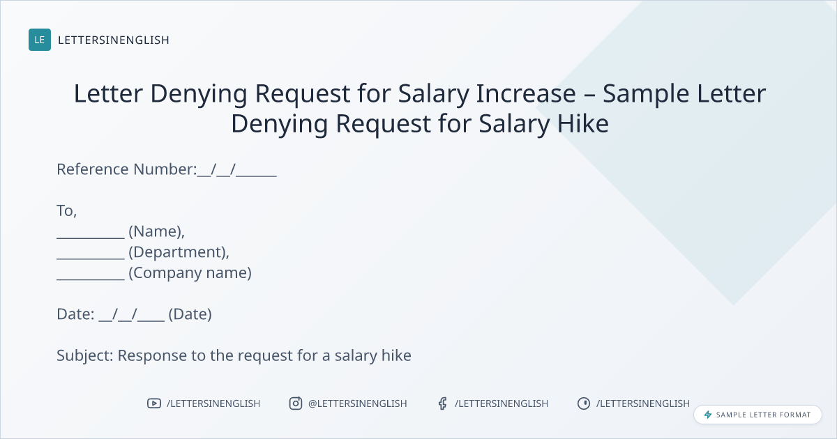 This letter is in reference to the request that we have received from your end. As per the letter, you were requesting a salary hike. Unfortunately, we won’t be able to increase your salary for the quarter/ year __________ (mention quarter/ year).