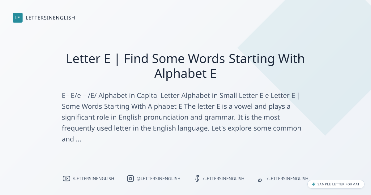 The letter E is a vowel and plays a significant role in English pronunciation and grammar. It is the most frequently used letter in the English language. Let’s explore some common and interesting words that begin with the letter E, categorized by the number of letters.