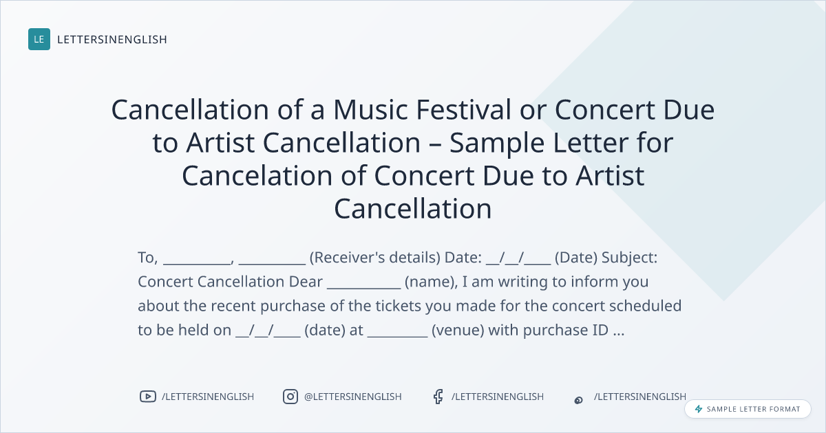 Cancellation of a Music Festival or Concert Due to Artist Cancellation – Sample Letter for Cancelation of Concert Due to Artist Cancellation