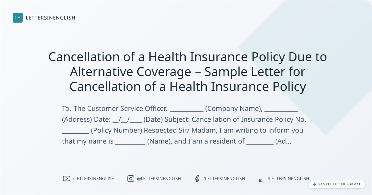 Cancellation of a Health Insurance Policy Due to Alternative Coverage – Sample Letter for Cancellation of a Health Insurance Policy