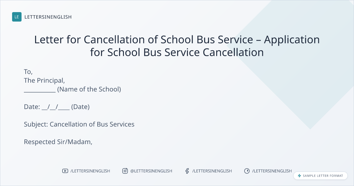 Letter for Cancellation of School Bus Service – Application for School Bus Service Cancellation