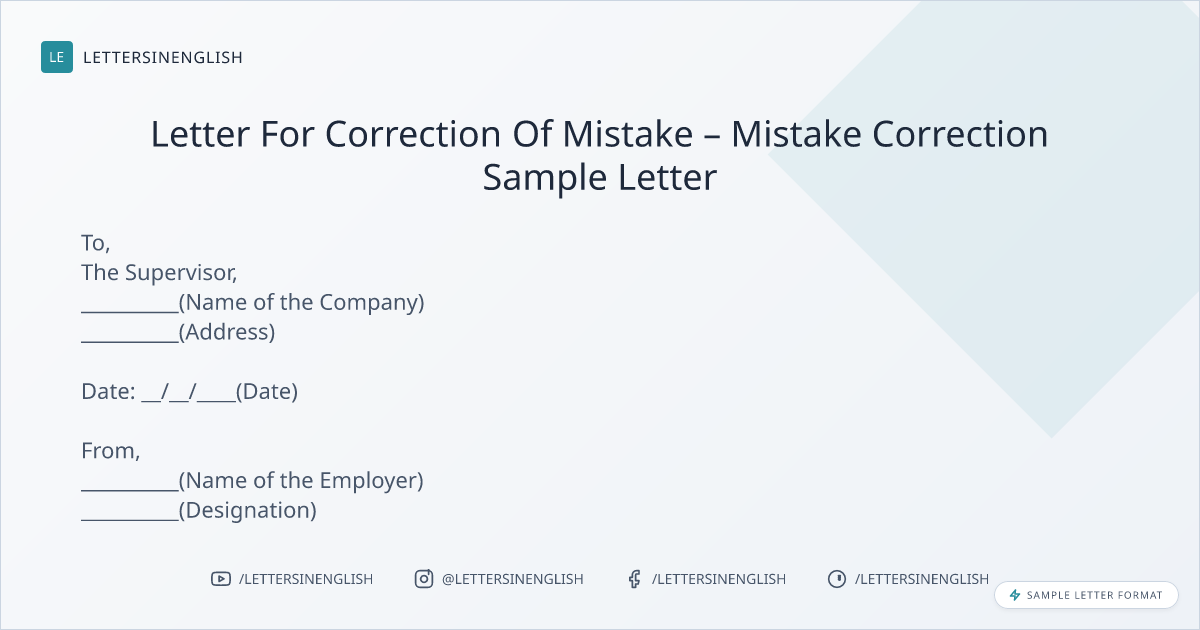 Letter For Correction Of Mistake – Mistake Correction Sample Letter