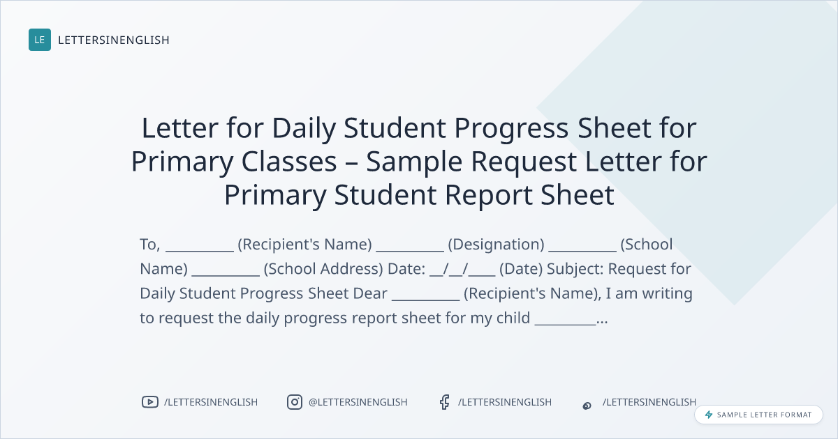 Letter for Daily Student Progress Sheet for Primary Classes – Sample Request Letter for Primary Student Report Sheet