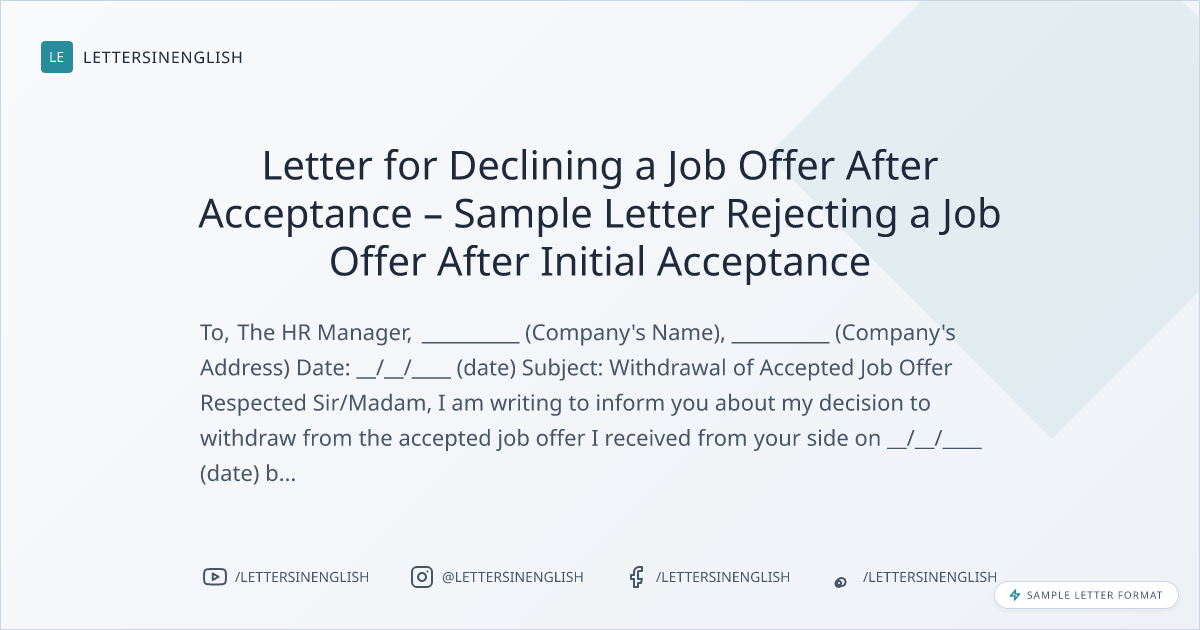 Letter for Declining a Job Offer After Acceptance – Sample Letter Rejecting a Job Offer After Initial Acceptance