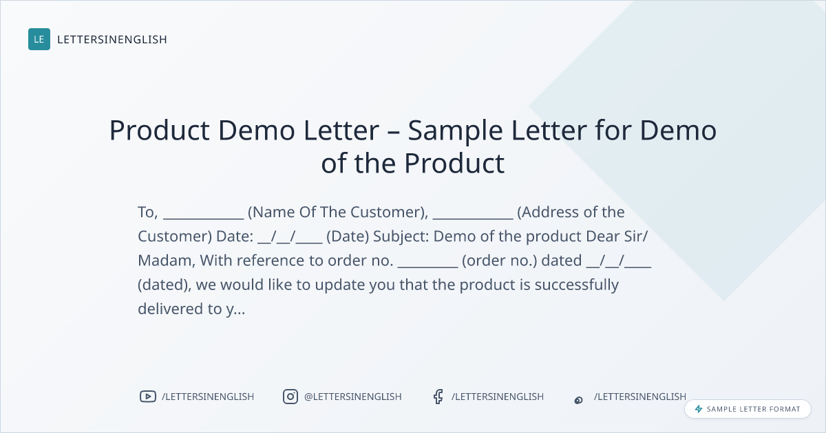 Product Demo Letter – Sample Letter for Demo of the Product