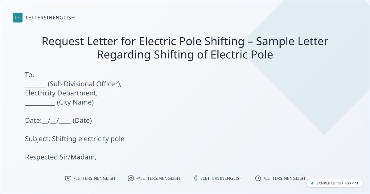 Request Letter for Electric Pole Shifting – Sample Letter Regarding Shifting of Electric Pole