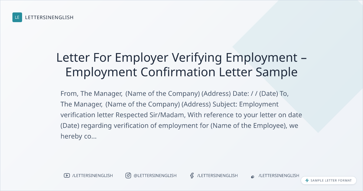 Sample Letter For Employer Verifying Employment