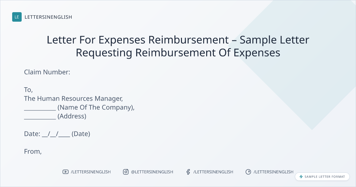 Letter For Expenses Reimbursement – Sample Letter Requesting Reimbursement Of Expenses