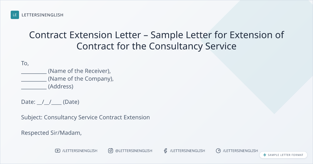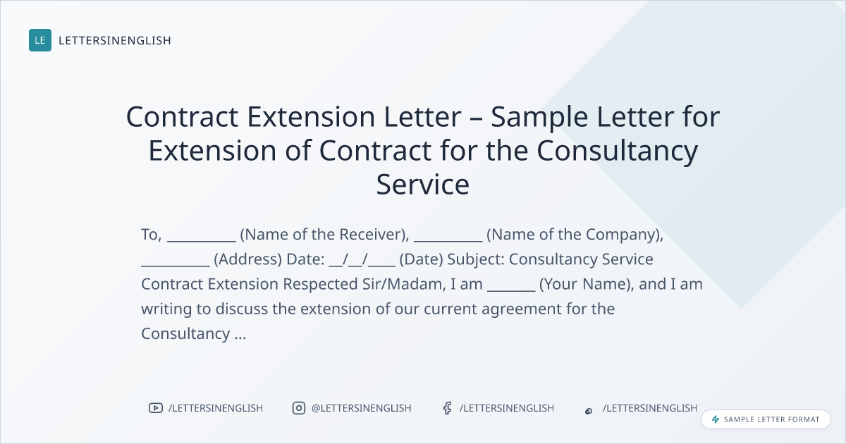 Contract Extension Letter – Sample Letter for Extension of Contract for the Consultancy Service