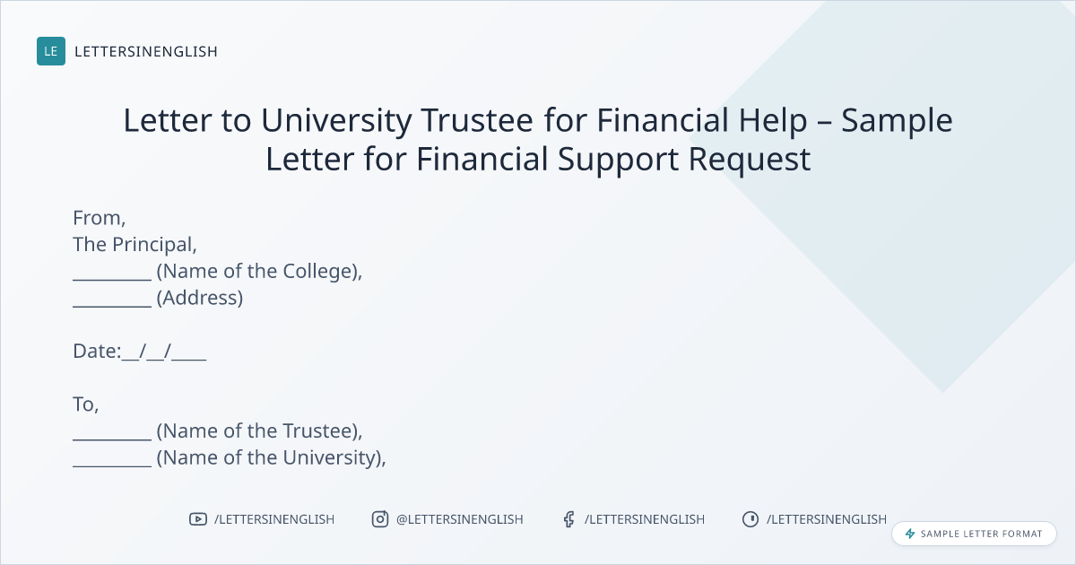 Letter to University Trustee for Financial Help – Sample Letter for Financial Support Request