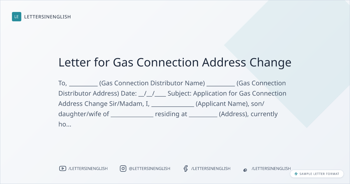 I, _______________ (Applicant Name), son of/ daughter of/ wife of _______________ residing at __________ ( Address) having a _______ (LPG/PNG) connection in the name of _________ (Connection Holder Name) having customer Identification Number ___________ (CIF ID). I have shifted to _____________________ (new address).