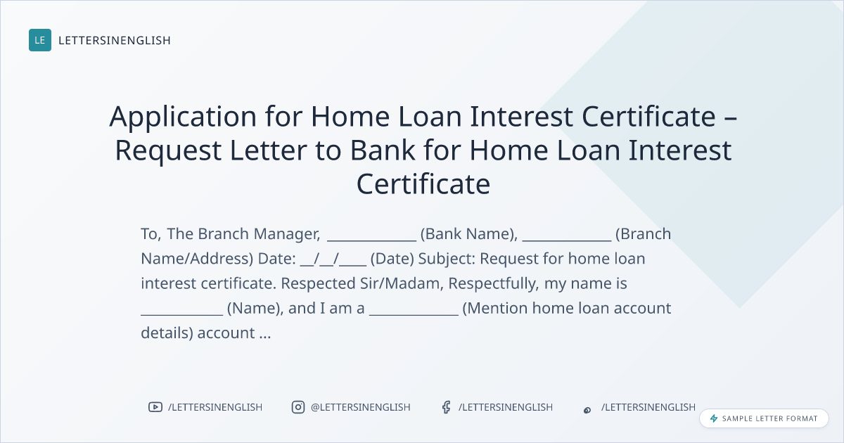 LETTERSINENGLISHApplication for Home Loan Interest Certificate – Request Letter to Bank for Home Loan Interest Certificate