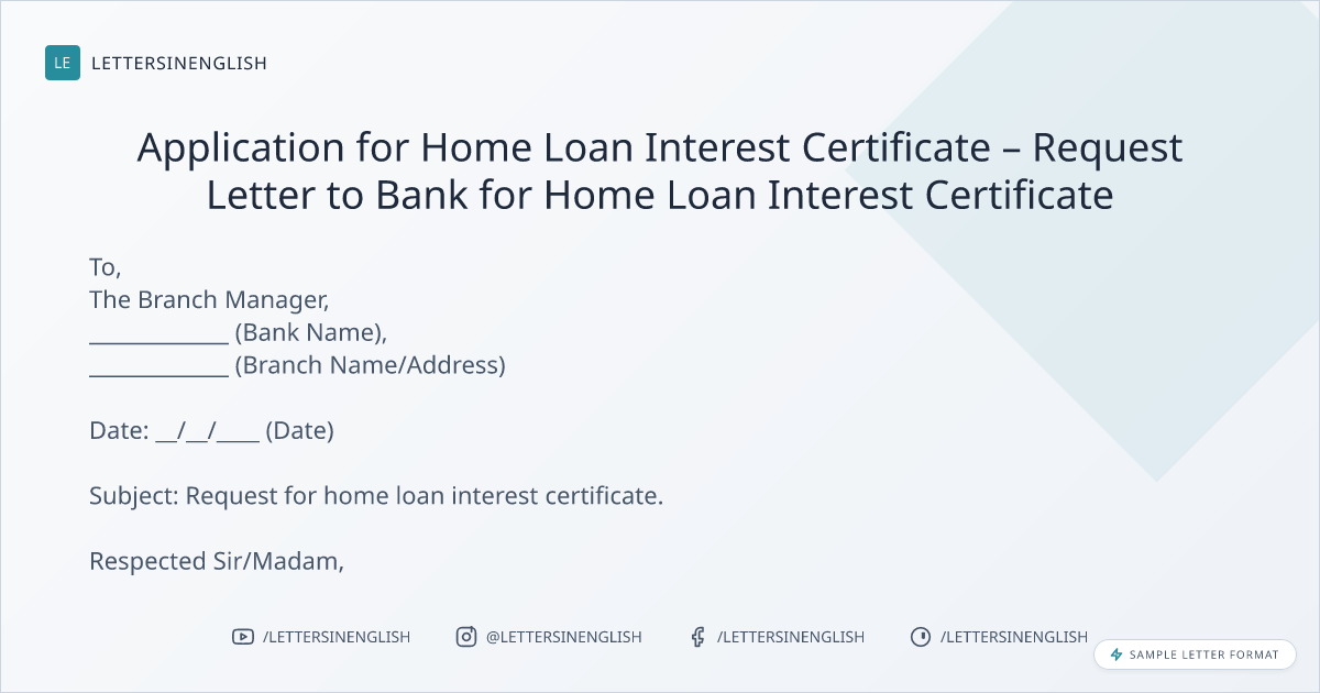 Application for Home Loan Interest Certificate – Request Letter to Bank for Home Loan Interest Certificate