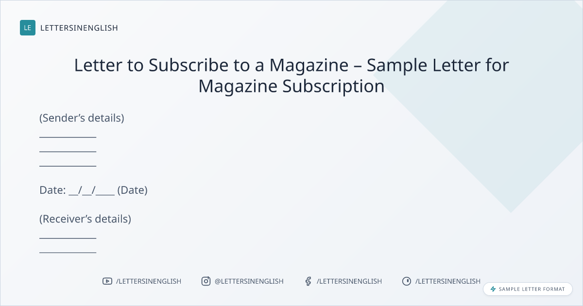 Letter to Subscribe to a Magazine – Sample Letter for Magazine Subscription