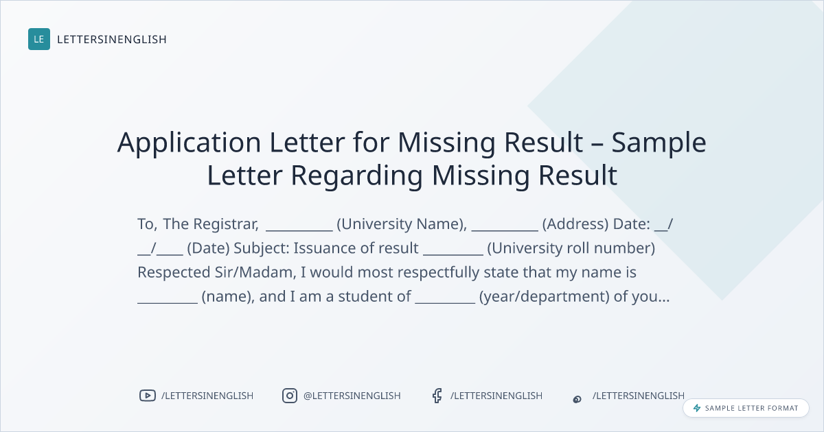 Application Letter for Missing Result – Sample Letter Regarding Missing Result