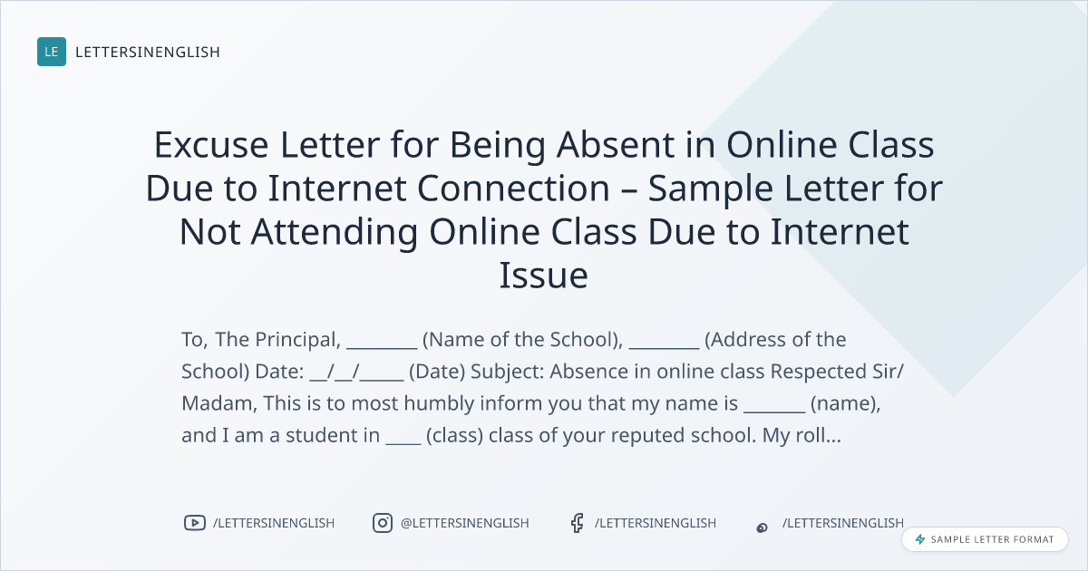 Excuse Letter for Being Absent in Online Class Due to Internet Connection – Sample Letter for Not Attending Online Class Due to Internet Issue