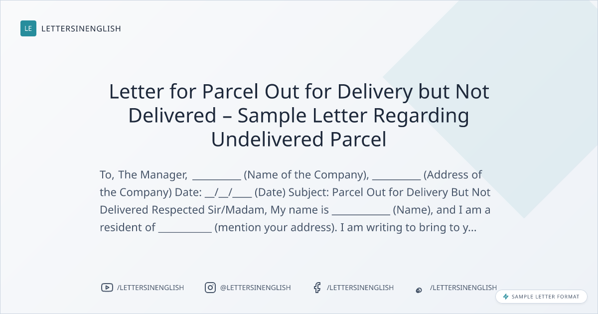 Letter for Parcel Out for Delivery but Not Delivered – Sample Letter Regarding Undelivered Parcel
