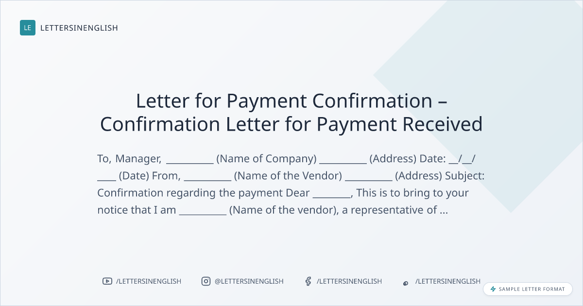 Sample letter for payment confirmation