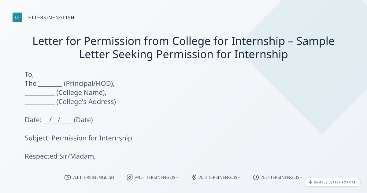 Letter for Permission from College for Internship – Sample Letter Seeking Permission for Internship